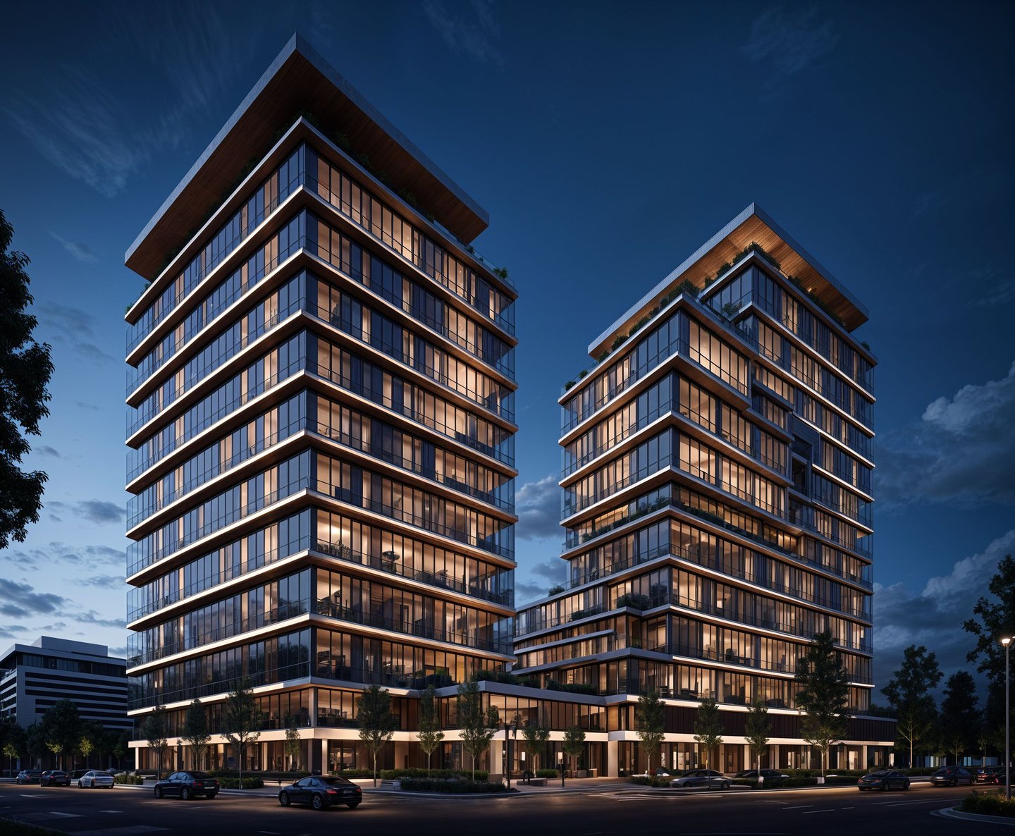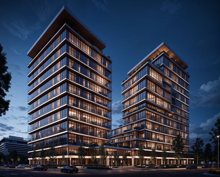 This luxury hotel is designed as a unified mass visually divided into two elegant volumes, creating the illusion of twin towers. The sleek glass façade and dynamic geometry reflect contemporary hospitality standards with a bold, refined character. The project offers a premium destination that merges architectural elegance with functional flow.
