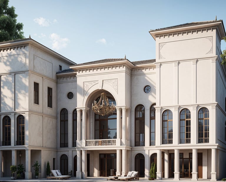 A luxurious residential Palace with a refined neo-classical design featuring majestic arches and symmetrical façades that evoke royal elegance. The project harmonizes traditional European aesthetics with modern-day functionality and comfort. Every detail was crafted to express a sophisticated lifestyle that balances luxury with simplicity.